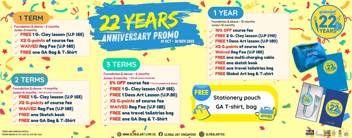 “My girl with Global Art Bukit Batok since she is 5 years old. She is 13 years old this year, and she is still learning here. The teachers at Global Art Bukit Batok gave their passion and great guidance to her, built her confidence in art as well as trained her sense in colour matching. […]
